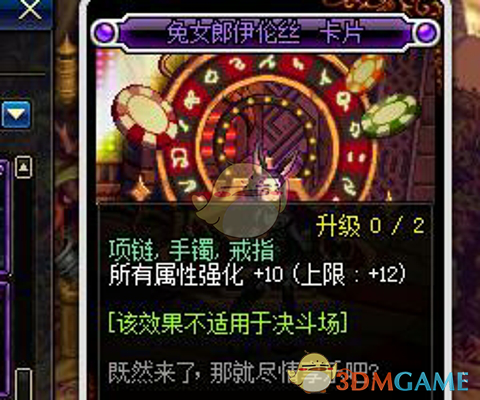 然后是首饰部位的附魔,哈林区域的精英怪卡片中有四个不同属性强化加成的精英怪卡片,每张卡片都是单属性强化加十三的,另外还有一个全属性强化加十二的卡片,名字叫兔女郎伊伦丝,十三点的属性强化附魔用来打卢克和鸟背单人模式是足够用的,而且价格并不贵,大家可以去打造一下。