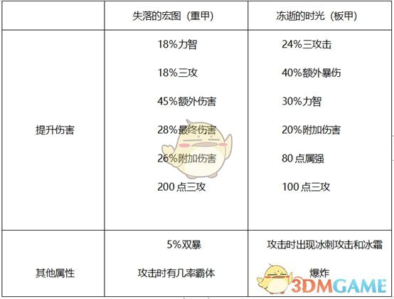 失落的宏图的亮点是高额的额外伤害,没有三速加成与不稳定的霸体效果是它的短板,加之伤害类型种类一般,不是很推荐大家做一套。若有本命情节搭配梦的设计师和正义裁决可使伤害最大化,也可选择贤者之欲和正义裁决,牺牲一小点伤害来换取高额的三速。