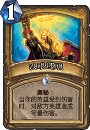 有个值得特别提及的有趣点,就是如果打震爆OTK牧或蓝龙贼这类鲜有随从打你脸的OTK卡组,水文学家要选以眼还眼(没有其他任何情况要选这个最烂的奥秘)。因为你只要把对手打到10滴血以下,只要你上了以眼还眼,对手就永远不可能打赢你。只有可能一拳40滴平手,或第一拳10几滴轰下去结果把自己打死。