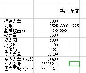 大佬们已经计算了系统奶的公式:2.24×A+3728(A为站街力量、智力-不穿戴任何装备时力量、智力),我们再假设带了一个荣誉+5500力量、+1100物攻的奶爸,太阳数据为6000力量,那么得出表格: