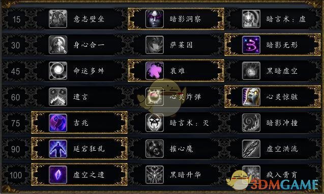 暗影洞察:常驻天赋。双近战此天赋用得多,读条环境不理想下,沉默、惊骇、恐惧进攻时不想被打断暗影系。