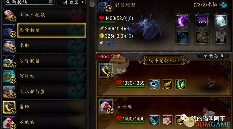 做争霸猎人成就可以不来沃顿,因为寄居蟹很多地图都有,我抓了只349速度的。只是沃顿西边海岸的好抓一些,有些地图的寄居蟹是在海底的。这里的寄居蟹会伴生宠物手册里显示纳兹米尔抓的小捋沙蟹,可以顺便捉。