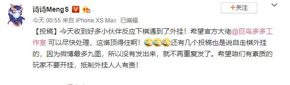 目前,制作《刀塔自走棋》的巨鸟多多工作室已经注意到了游戏中外挂的问题,并发微博劝诫玩家珍惜自己的账号,而玩家们也纷纷在这条微博下吐槽。