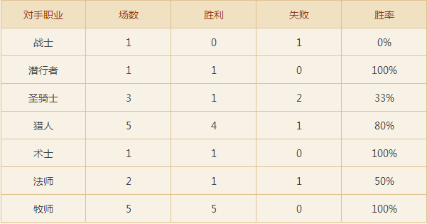 碰见战士感觉如果10费对面还有20血就不要太挣扎了,多半没戏了;法师四六开吧,感觉不是太好打,奇数法点的你受不了,比猎人还变态可以点怪的,奥秘也难受。术士挺少的,德就没碰到。。。