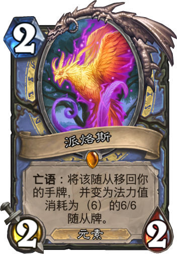 派洛斯也是一张不错的卡,虽然本身的属性不算很好,但能连续给两次手牌,在竞技场这种缺少过牌的环境中很实用,1张可以当3张用了,前期出小怪,后期来大哥,也是蛮有节奏的。