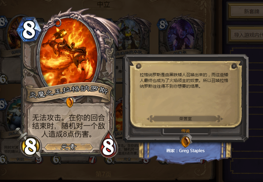 如果要评炉石传说老玩家最爱的一张橙卡,炎魔之王拉格纳罗斯无疑是榜首,不仅是其随机打8的强大特效,更因为霸气的台词(死吧虫子)所致。以前每每排上大螺丝的一刹那,我的中二之魂都会熊熊燃烧!只可惜后来这张橙卡被设计师送进了荣誉室。