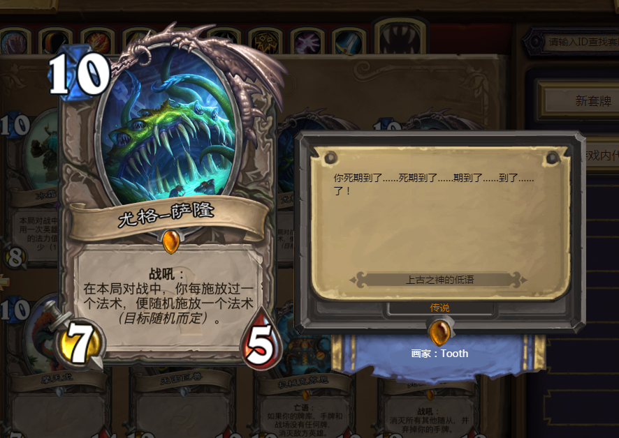 如果雷诺引领的宇宙系思路使得控制卡组大行其道的话,尤格萨隆无疑是他们的死对头,第一次将炉石传说最富有魅力的随机性彻底展现在玩家的面前,不论是疾跑加上星界沟通的车祸现场;还是扭曲虚空火球术寒冰箭的绝地翻盘,导演(尤格萨隆)都能将你的对局安排得明明白白,让死亡之声召唤你的棋手之魂!