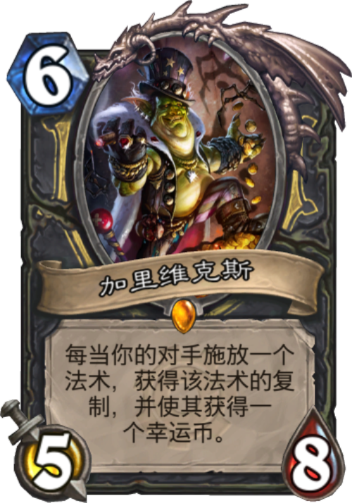 穴居人强盗的效果虽然看上去不是很好,在对方释放法术的时候只是多一个幸运币而已,但这个幸运币有时候也能起到很大的作用,要么连续刷牌,要么让卡组有多的费用达成OTK效果,所以面对它要释放法术的时候也有点虚。