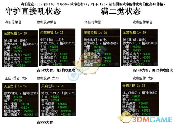 勇气祝福、荣誉祝福 力量智力+3%,觉醒增强力量智力。