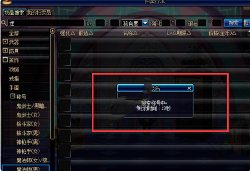 1、打开拍卖行→首饰→称号→选择职业→搜索。
