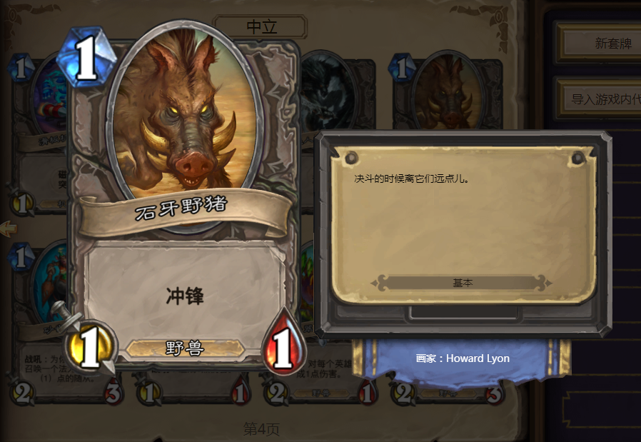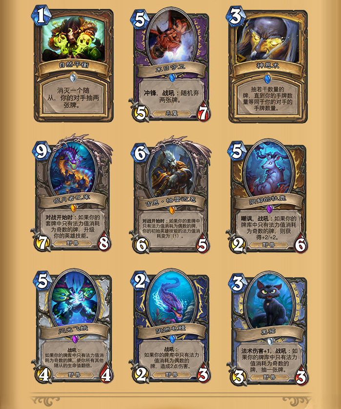 除了配合度之外,有关卡组构筑问题也是荣誉室卡牌的通病,像是德鲁伊的自然平衡以及圣骑士的神恩术都似乎的某些卡组构筑的必备牌,快攻骑士跟控场系的德鲁伊总有卡组插入一张。反观网友常常惦记着的石牙野猪,则没有这方面的危机,就算要围绕着他构筑的卡组都需要十分巨大的卡牌数量进行配合!