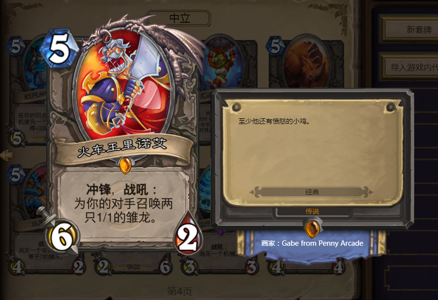 至于玩家们热议的大蓝龙同样也是这个道理,虽然跟某些法术配合可以打出一回合OTK的套路,但是毕竟是下个版本是巨龙年,龙系卡组必然会大推,这个节骨眼上设计师自然是不会对于龙族卡牌动手了!