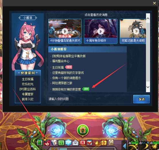 1、游戏内选择点击小悦,之后点击“测测和女神的亲密度”