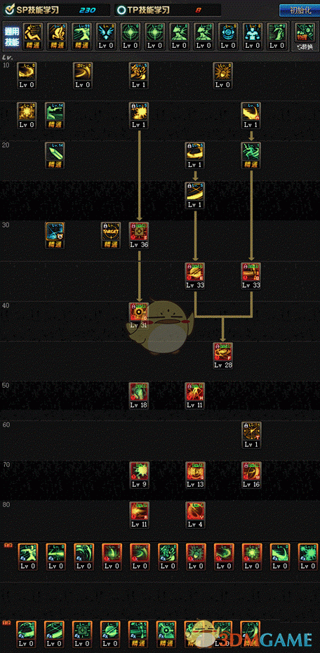 更新后,SP得到优化,特工有足够的SP去分配到各个技能,同时新增了60、70TP。推荐加点中,多余的8TP(未做PK任务的的剩余6点),可以视个人喜好在精准射击、满月斩中取舍。瞬击点1能有效的帮助特工连招抓取等。