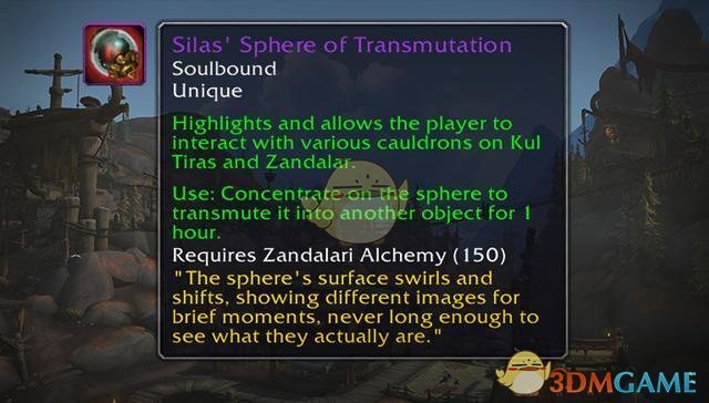 使用效果允许玩家在库尔提拉斯和赞达拉中与各种大锅互动,并会获得不同的效果。可以让一个物品变成另外一种物品,持续1个小时。有点魔法棒的意思,很好玩。