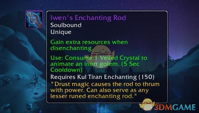 被动效果是可以在分解装备的时候获得额外的材料。主动技能是消耗一个萦雾水晶来激活一个惰性傀儡(5秒冷却时间),绝对是很超值的一个物品,附魔师傅们是不是要赶快行动起来了。