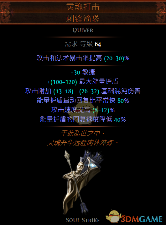 灵魂打击箭袋主要是为了降低护盾充能的间隔我推荐秘术师们尽量堆一些减伤护盾充能间隔的东西(比如戒指的大师附魔就很不错)