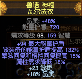 选择魔力底子高护盾就可以,目前没有绑定的暗金 有把混沌长杖也可以考虑一下