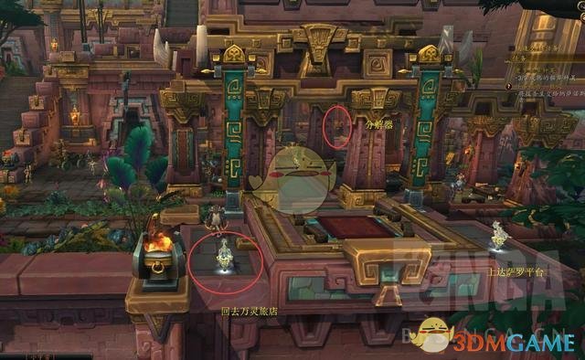 先从下方说起,个人觉得这版本炉石定在万灵旅店最合适,因为离收菜、去库尔提拉斯的船最近,而在旅店对面,有一个直达工匠平台的翼龙鸟点,回城收菜分解装备很方便有木有?