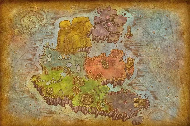 旧地图上只有虚空风暴和地狱火半岛的周围才有浮空岛,新地图在赞加沼泽、纳格兰和影月谷周围也增加了许多。