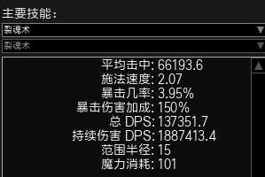 在毕业装备的支持下裂魂达到丧心病狂的29级,DPS高达188w,附带6w的混沌直击伤害
