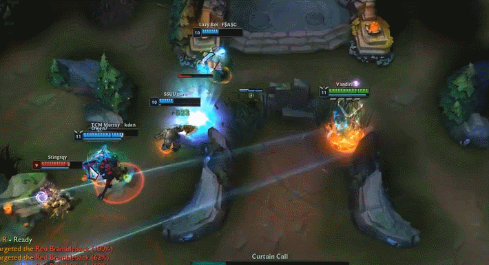 由于烬的大招会根据血量造成一定的额外高伤害,因此四连发的大招甚至能够秒掉满血的非坦克英雄。也还好最近的赛季结束,而且这只是存在于PBE的一个Bug。