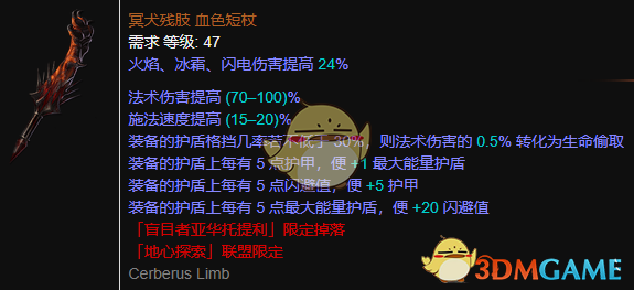 这是一对非常棒的组合,可以前期给与你大量的护盾(1000+),武器本身伤害和施法速度也足够让你刷图流畅,缺点是略贵。
