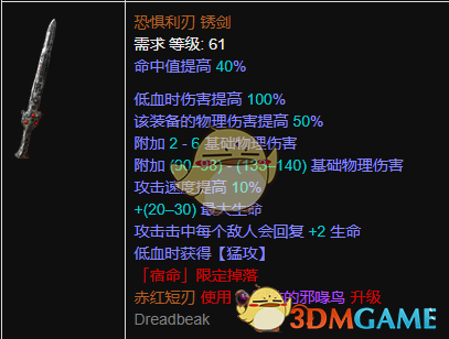低血初期非常好的武器,低血时候100伤害外加猛攻,对于刷图来说非常舒服