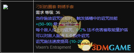 新手套几乎就是给混沌之毒准备的东西。天赋点出双诅咒+手套一个诅咒,你可以很好的放出三个诅咒来提升能力,混沌之毒是一个诅咒技能,所以施放混沌之毒可以放出手套里的诅咒,但注意就是手套触发的诅咒是无法加成混沌之毒的伤害,但是可以诅咒你的敌人。这样可以达到轻松的三诅咒组合。