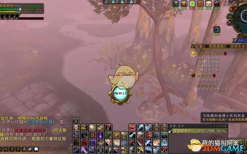 这里的任务略坑,小怪刷新的很慢,地精是处于隐身的状态,所以需要根据屏幕下面的一个光球装置来寻找地精们,距离地精越近,光球就会越亮,走到地精附近时,地精才会现身。