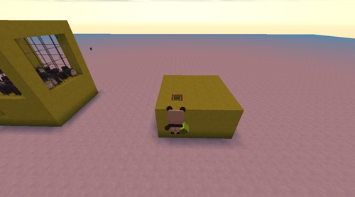 3、然后最上面一层用方块给封上,记得如图所示留个位置放木质窗哈~