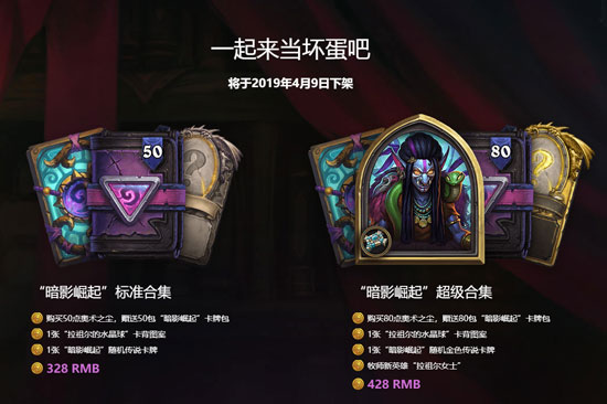 炉石传说在2019年推出了自己的第一个新版本,这次版本主题是暗影崛起。作为一个大的版本,很多人非常好奇暗影崛起卡包价格。那么暗影崛起预购多少钱?下面就为大家带来炉石传说暗影崛起预购卡包价格。