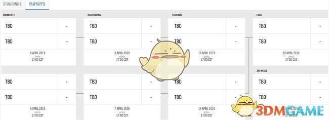 常规赛阶段八强战队将按照排名,分为1、4、5、8,以及2、3、6、 7 两组,并通过冒泡赛的形式,决出各组第一名队伍进入决赛,各组第二名队伍则将争夺季军。