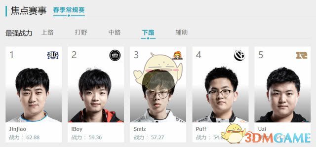 在ADC位置上,BLG战队Jinjiao拿下了第一宝座,和ADD一样,不少玩家质疑Jinjiao排名第一。第二名由EDG的iBoy拿下,他的战力值来到了59.36,第三则是战力值为57.27的Smlz。令人意外的是,Uzi战力值仅54.36,排名AD位第五,JKL更为凄惨,直接就没有上榜……