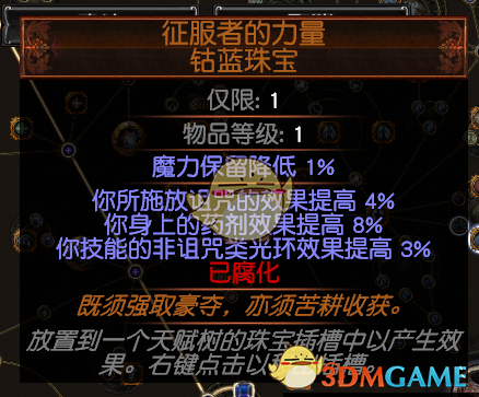 基本天赋(优先找出天赋所有魔力保留),70级就可以转。剩下的天赋找能量护盾即可(emmm不怕死可以点珠宝孔,插减魔力保留的腐化珠宝,不过不推荐)