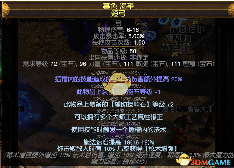6;找人代工或者自己解锁了+2辅助技能等级【隐匿词缀】附魔+19%施法速度【秘术增强】+使用技能时触发法术