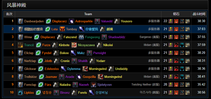 DPS的位置没有太大变化,依旧是盗贼和恶魔猎手这两个职业称霸,但是法师的掉队已经打破了DPS贼法瞎的固定位置。
