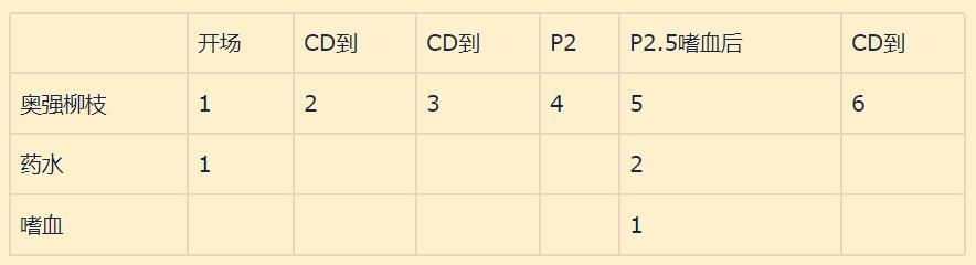 个人技能安排(其中第三次奥强柳枝P1尾开或P1.5科考开看团队DPS)
