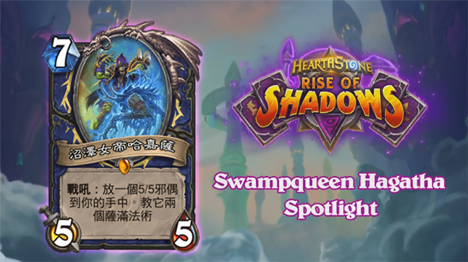 今天凌晨,在上周五公布完炉石传说新版本暗影崛起的新机制以及8张新卡后,炉石官方就迟迟没有新动作。不过,今天凌晨,暗影崛起版本的萨满新橙卡终于公布了!萨满传说随从,7费5-5,沼泽女王哈加莎,战吼:将一张邪偶置入你的手牌,并教会它两个萨满法术。邪偶,5费5-5,战吼:施放两个法术已学会的法术。