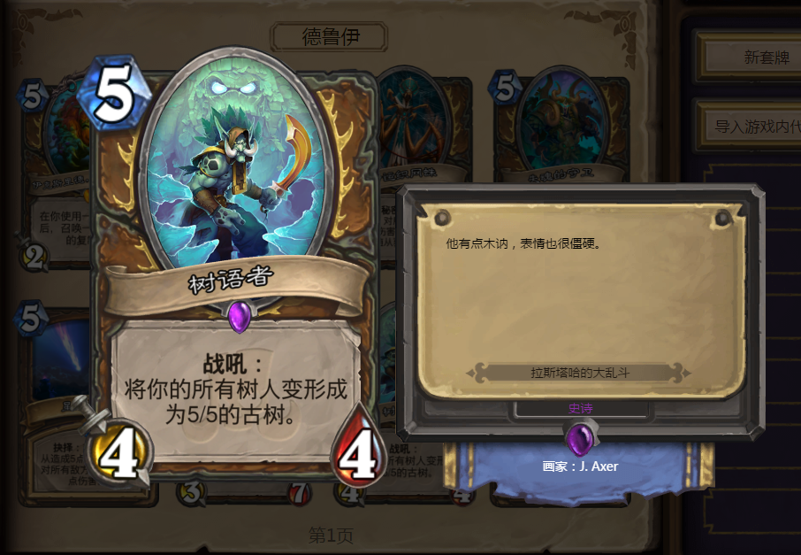 有了这张新卡之后,我们在新版本中还可以和“树语者”进行一波配合,瞬间将场上2/2的树人变成5/5,我的鬼鬼这怕是太强了一点吧,一地的5/5谁能解得动啊。关键是这还能至少铺2波,你的AOE有我铺场快吗?所以现在小德的债都还完了吗?
