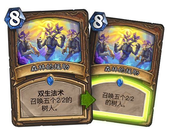 ②双生法术肯定很多玩家还比较看好,就像这张“森林的援助”一样,双生法术需要的费用很高,8费虽然能再给我们一张8费,但是没有减费的增幅下消耗还是蛮大的。这个机制虽然还不错,但是从设计的角度来说,双生法术的定位必然是增加厚度增加续航能力,而单法术的强度不会太高。所以这个机制的上限应该不会太高,可能个别职业会有突出的法术,整体机制不会太强。