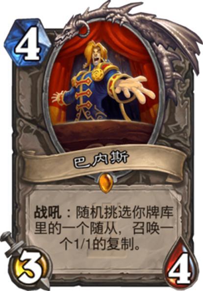 而狂野模式之所以狂野就是因为狂野卡池中充斥着各种难以控制的单卡,这里我们就不得不提到一张卡——巴内斯。巴内斯就是这样一张在削弱边缘反复试探的卡。有时候巴内斯实在太"过"了,尤其是在大哥牧手上,大哥牧很强,很有韧性,在狂野模式中表现得可能有些疯狂,但是狂野中并不乏很多强力卡组,比如海君贼和奥秘法在面对大哥牧的时候优势巨大。