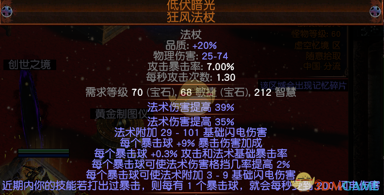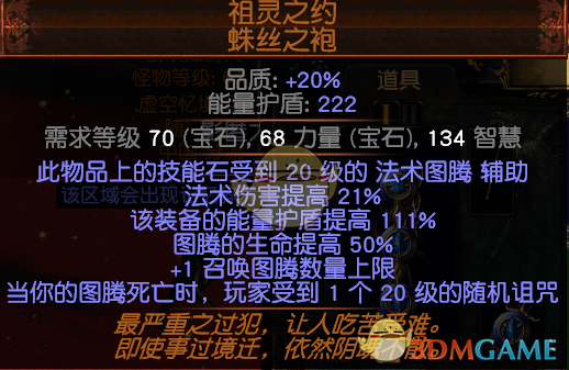 小弟打18的时候技能都是19级20品质装备找血、蓝、抗性如果有生命回复会更好因为武器原因图腾暴击时会每秒受到200点闪电伤害