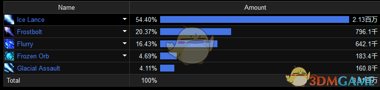 另外单体战斗中,所有瞬发暴风雪都打,这样的话占比大概会在4%—7%,效果还不错。
