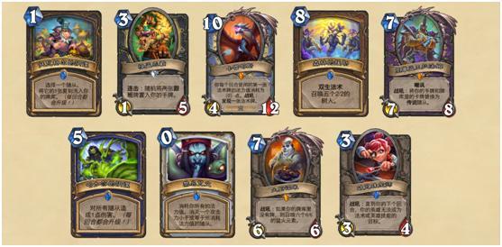 除此之外,新卡中也可看到一些有意思的元素,比如“双生法术”关键词,可以有效增加套牌的厚度,单看德鲁伊的“森林的援助”就能为树人德提升强度上限。