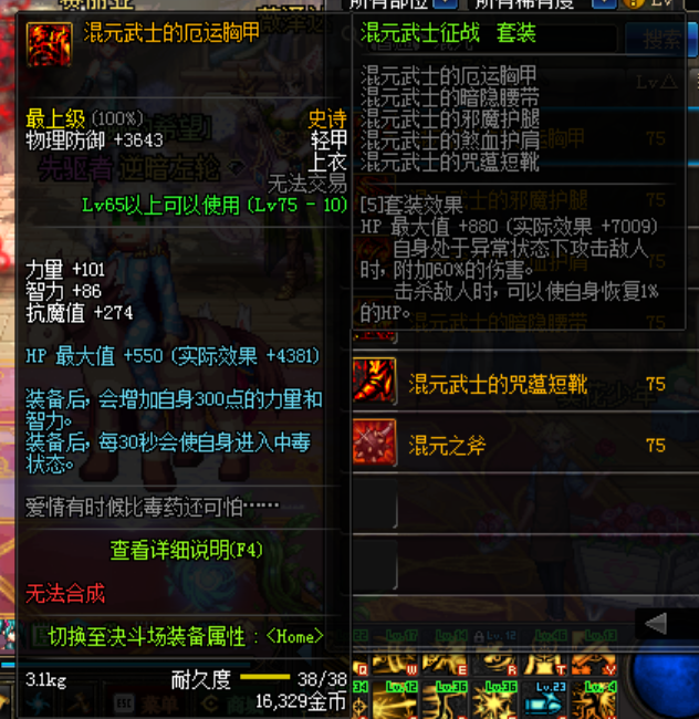 第二套要说的,可能比逆龙套知名度要高一点,混元武士套,跟精炼首饰一样,进图以后你就分不清东南西北了。套装属性也简单粗暴,自身处在异常状态的时候,附加60%的伤害。60%,这个数值不管放在哪里都不算低。这些装备现在想要获取的话,可以通过时空之门深渊,歌兰蒂斯处只能换三件。