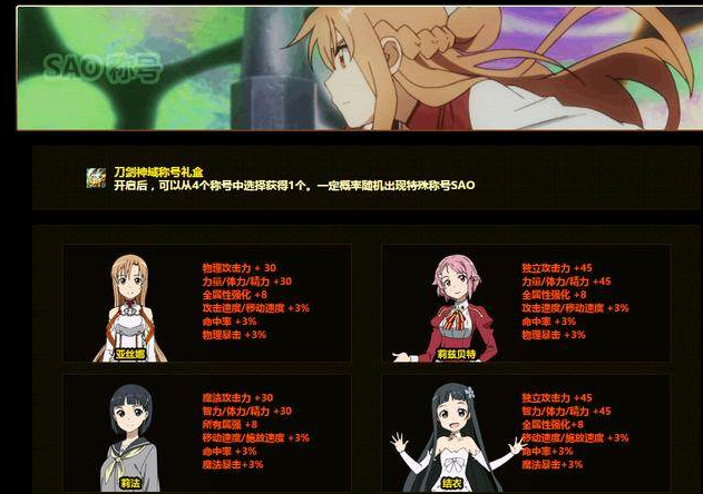 而其实这个称号和地下城最受欢迎的sao礼包有关,这个称号就是SAO目前为数不多的称号之一了。