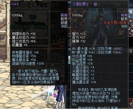 可是仔细一看这个SAO称号的属性,这属性可能在以前算是非常不错的了,但是放到现在这属性只能说是垃圾了。