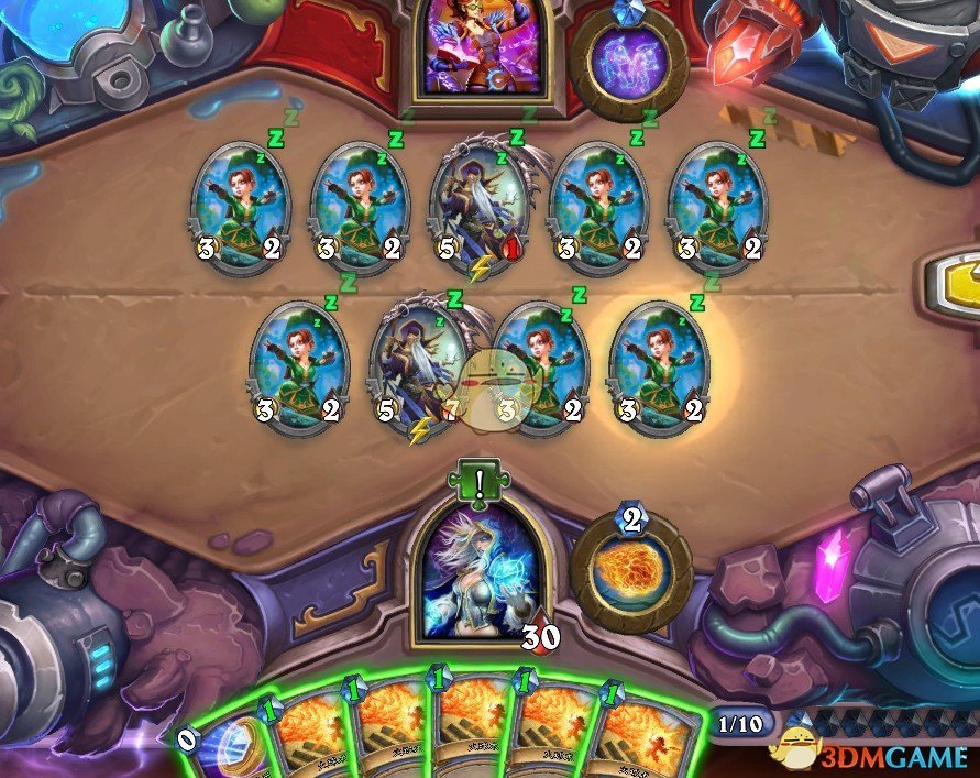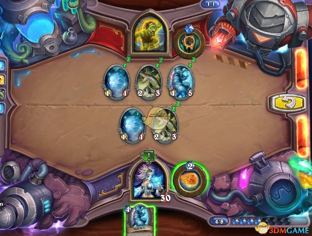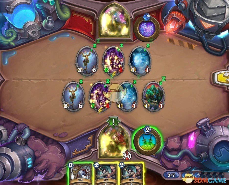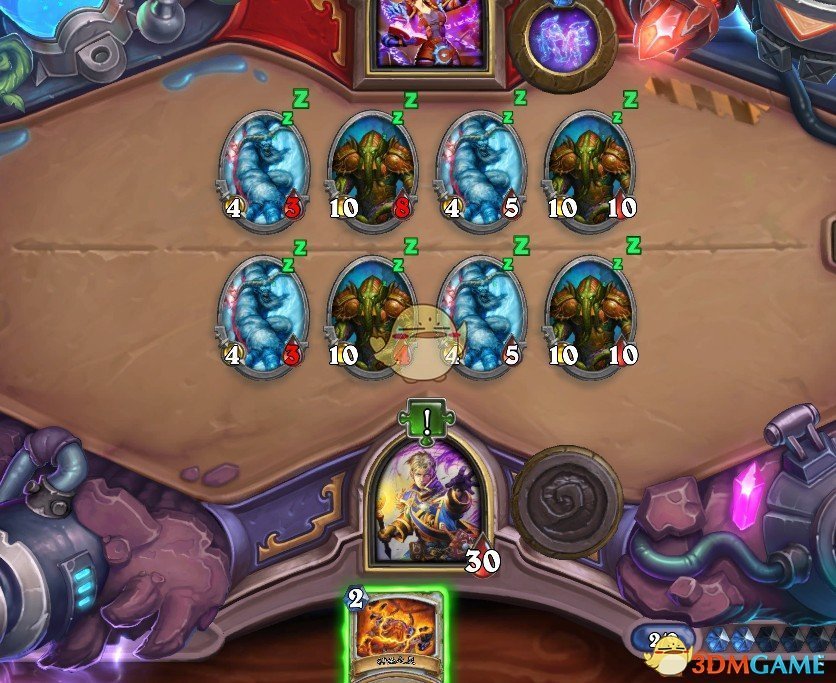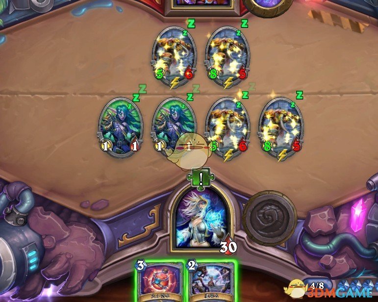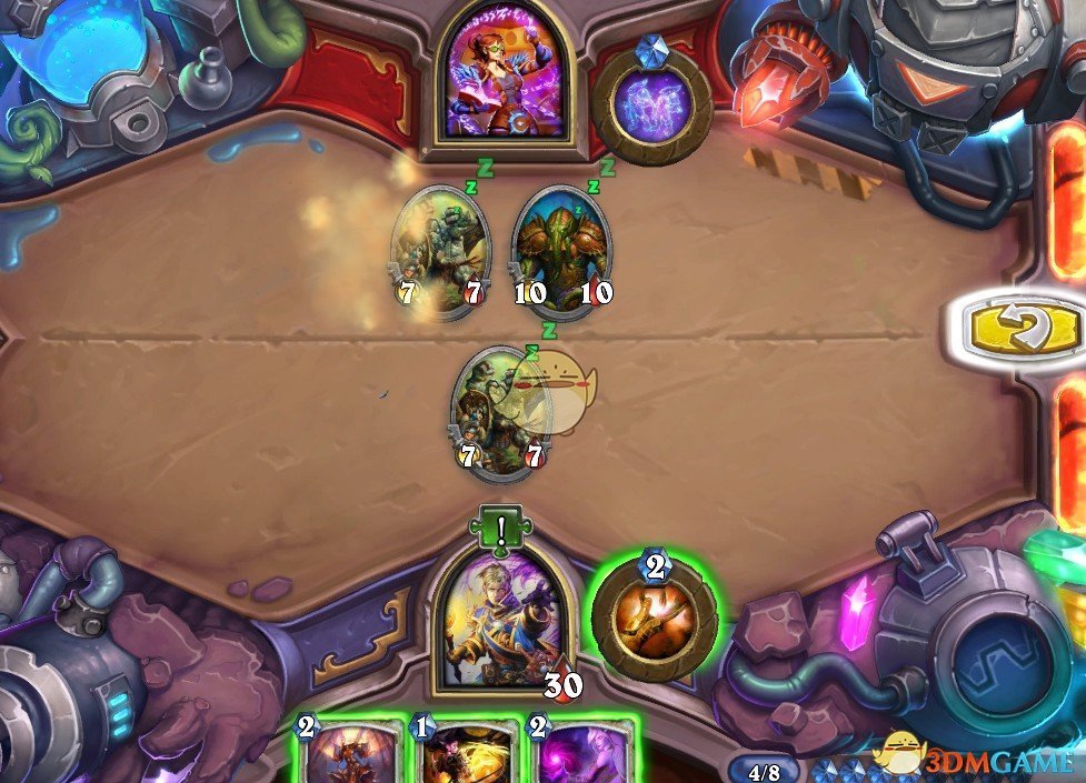 6.惩击自己一个雪人变成4/3,惩击自己6血的无面巨兽到10/4,奶另一个10/8无面巨兽到10/10,星辰排列,翻倍10/4到10/8