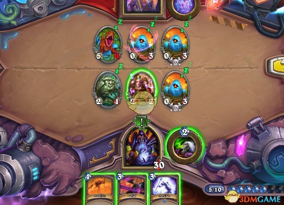 3.暗色炸弹打蛋,猫头鹰沉默一个蛋,绞肉车撞魔暴龙拉出牌库中的蛋,地狱烈焰